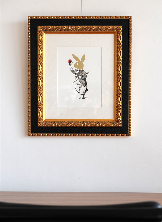 ノベルティの作品を1番豪華なフレームでお飾りいただく。